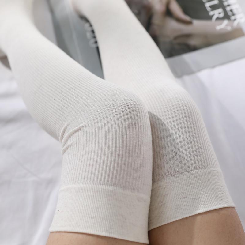 靴下 レディース 高筒ソックス 春秋 綿 ストライプ オートミール色 美脚 韓国 インスタ風 高め 小腿 黒 グレー ピンク系