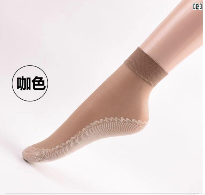 靴下 レディース 春夏 綿混 中筒 薄手 滑り止め 吸汗 摩擦防止 無地 肌色 コーヒー色 ブラック グレー(x10)