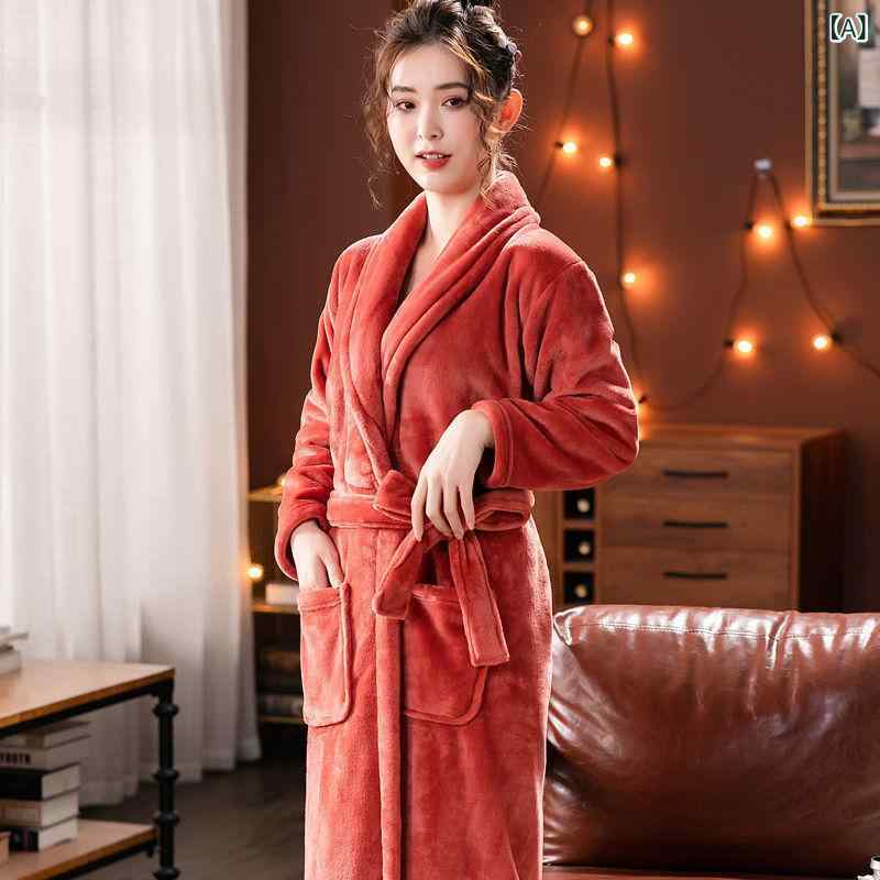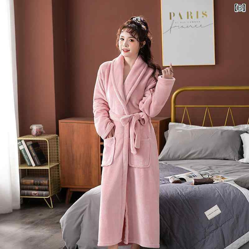 バスローブ 男女兼用 フランネル 厚手 あったか ロング丈 ナイトガウン ルームウェア 部屋着 コーラルフリース 冬用 カップル ペア
