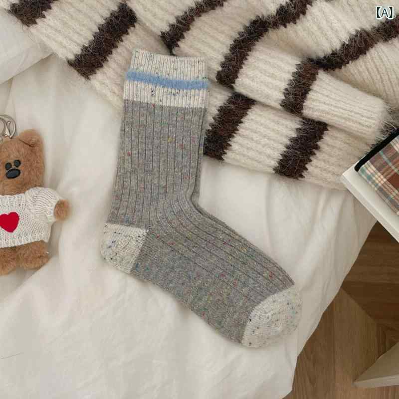 靴下 レディース 厚手 ウール 混紡 ソックス リブ編み 配色 秋冬 あったか カジュアル かわいい