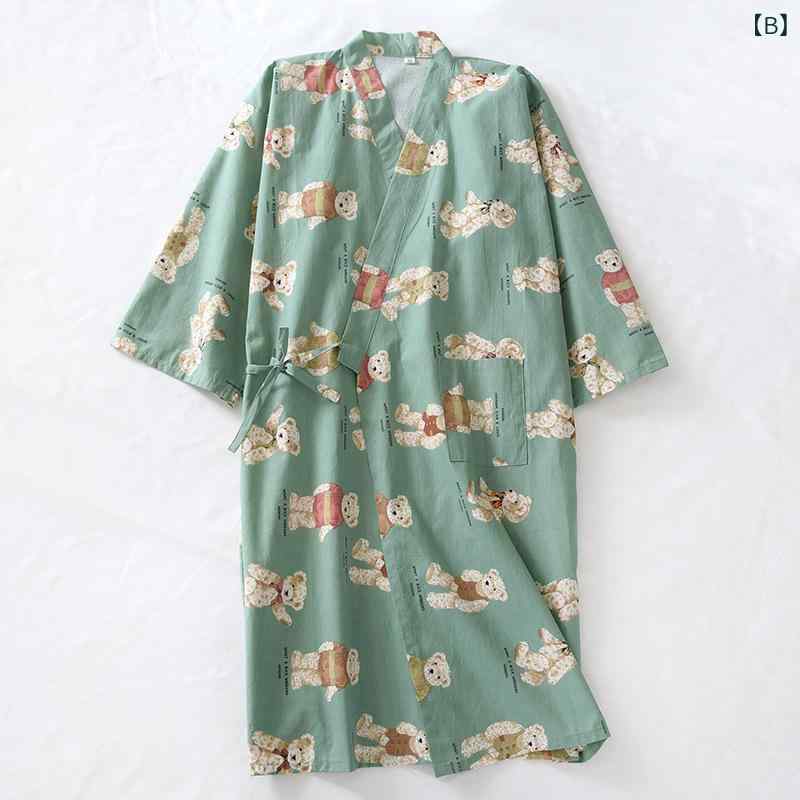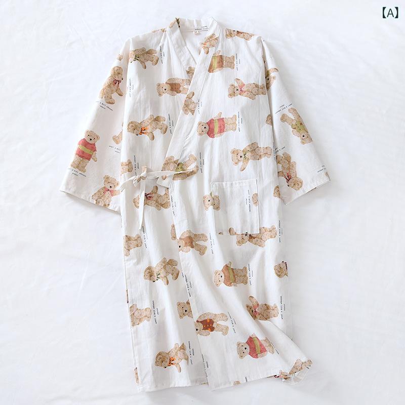 ルームウェア レディース 和風 ガウン バスローブ 薄手 帯付き コットン ウォッシュ加工 部屋着 寝巻き かわいい フェミニン 春夏 リラックスウェア