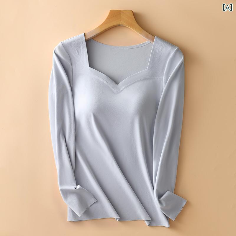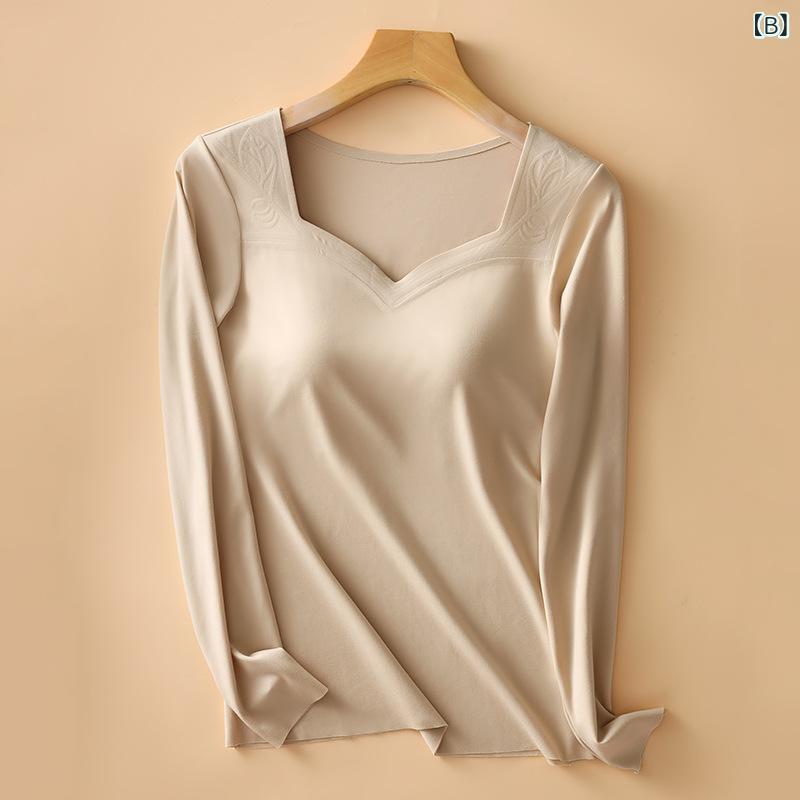 インナー レディース 長袖 秋冬 ブラトップ付き 肌着 保温 接触冷感 Vネック 薄手 あったか 無縫製 女性用