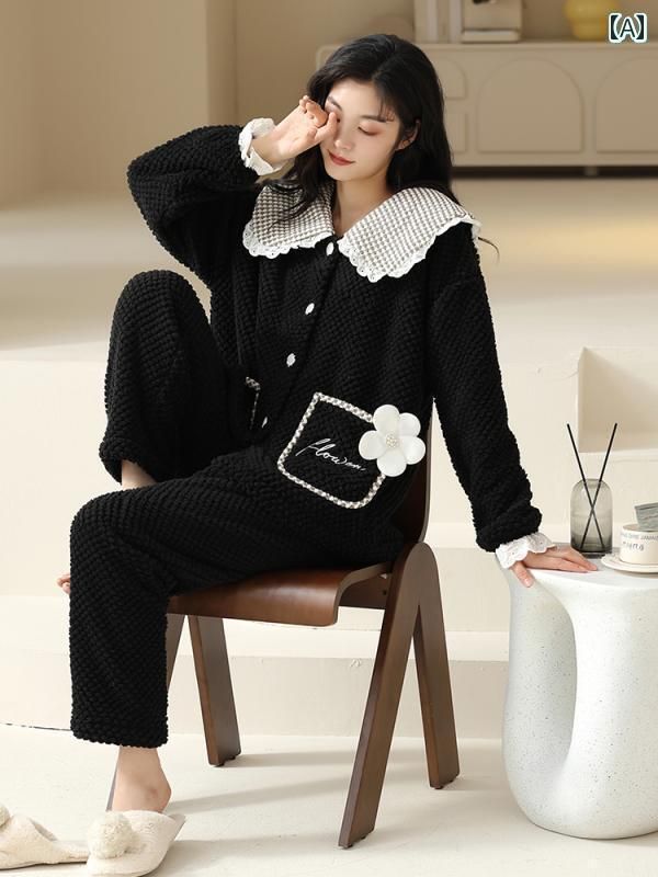秋冬 レディース パジャマ ナイトウェア 快適 起毛 厚手 暖かい ホームウェア エレガント